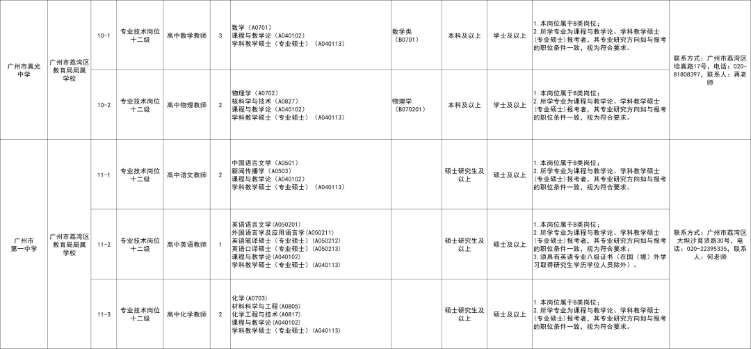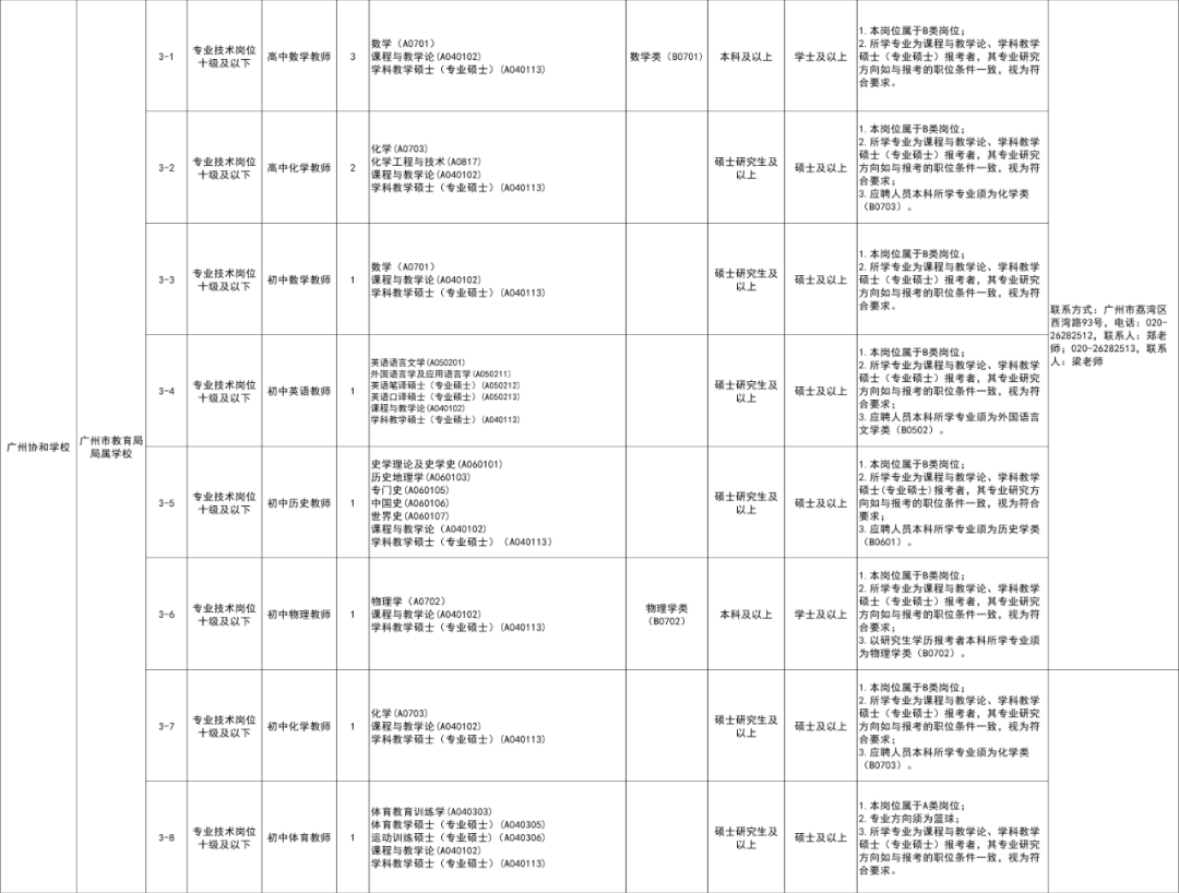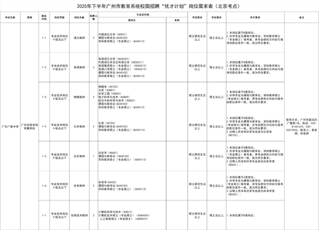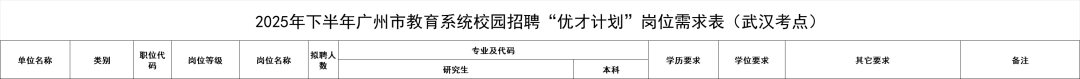 详见《2025年下半年广州市教育系统校园招聘“优才计划”岗位需求表(北京考点)》《2025年下半年广州市教育系统校园招聘“优才计划”岗位需求表(武汉考点)》。