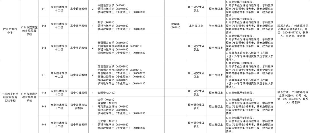 广州市教育局咨询电话020-22083791,监督电话020-22083786,具体岗位情况可咨询各招聘单位的联系电话。