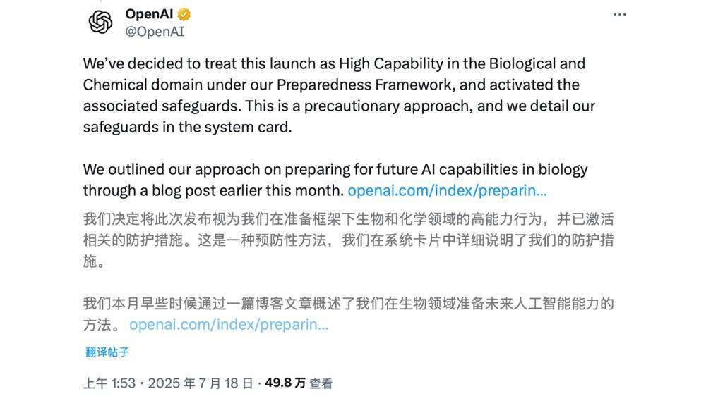 山姆·阿尔特曼在 ChatGPT Agent 推出后专门发布长篇推文警告用户,要求用户审慎地使用 ChatGPT Agent。