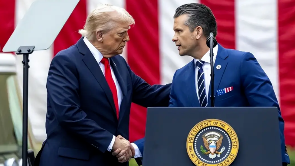 通常情况下,美国防长被视作美国政界与军界之间的“缓冲垫”与“防火墙”,但赫格塞思(右)显然没起到这方面的作用。